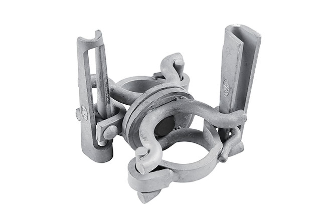 Vridbar dobbelkobling for montering av midlertidig fallsikring på stolper og alurør. Passer også de fleste stillas fabrikat. Monteres enkelt uten verktøy.