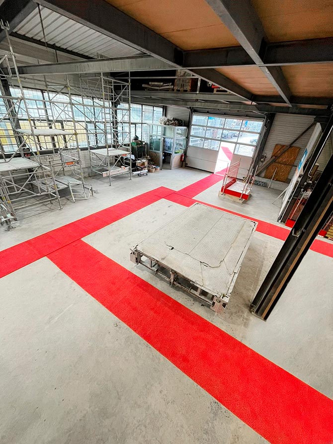 SafetyRespects SafetyMats beskytter gangsoner i alle miljøer mot smuss og fukt, noe som reduserer både slitasje og rengjøringskostnader. De bidrar til å forebygge skliulykker og markerer tydelig sikre passasjer for ansatte og besøkende på arbeidsplassen.