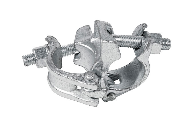 Vridbar dobbelkobling for montering av midlertidig fallsikring på stolper og alurør. Passer også de fleste stillas fabrikat. Monteres enkelt uten verktøy.