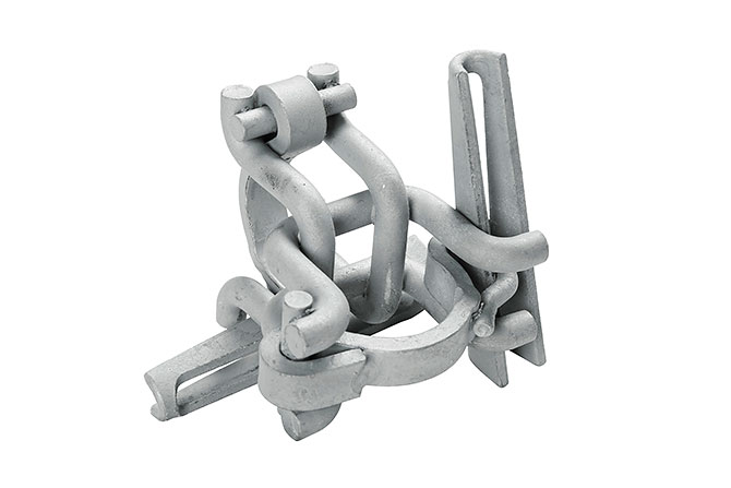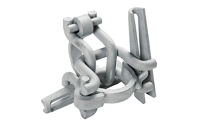 Dobbelkobling fast med kile for montering av midlertidig fallsikring på stolper og alurør. Passer også de fleste stillas fabrikat. Monteres enkelt uten verktøy.